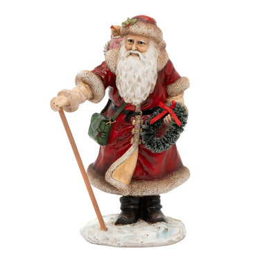 Babbo Natale con ghirlanda a corona. Babbo Natale ha un aspetto anziano e si regge su un bastone.Caratteristiche Misure: 20CM Materiale: Polires...