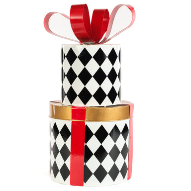 Set di 3 scatole in metallo con motivo a tamburo, con rombi neri e dettagli rossi. Ideali per creare composizioni regalo, o per contenere dolci o o...
