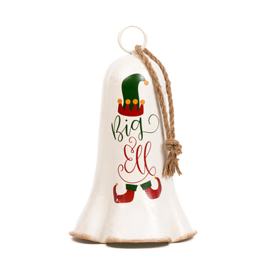 Campana bianca in metallo, con un anello sulla parte superiore e un cordino per permettere il facile spostamento. Con disegni natalizi colorati. Ca...