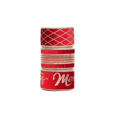 Nastro decorativo di colore bordeaux, assortiti in 3 motivi: a rombi , a strisce e con la scritta Merry Christmas. Perfetto per addobbare l'albero ...