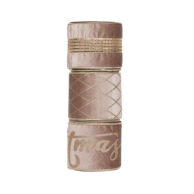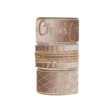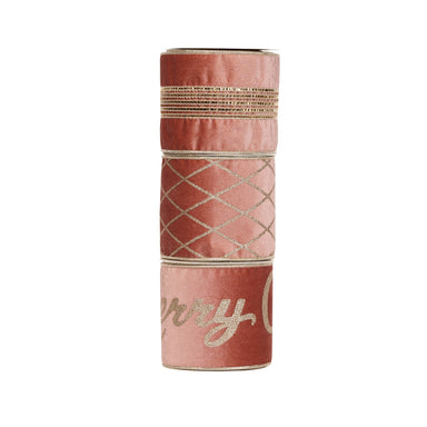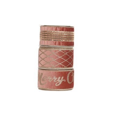 Nastro decorativo di colore rosa antico, assortiti in 3 motivi: a rombi , a strisce e con la scritta Merry Christmas. Perfetto per addobbare l'albe...