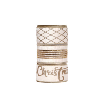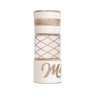 Nastro decorativo di colore polvere, assortiti in 3 motivi: a rombi , a strisce e con la scritta Merry Christmas. Perfetto per addobbare l'albero d...