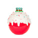 Base per albero di Natale a forma sferica, ispirata a un dolce natalizio, con glassa colante, dettagli colorati e una decorazione invernale, perfetta anche come ornamento festoso. Funzionale anche come decorazione autonoma grazie al tubo per l'albero removibile e dotata di led.
