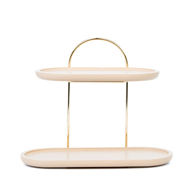 Alzatina a 2 piani con Struttura color Oro e Piani in Vetro