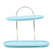 Alzatina a 2 piani ovali in Legno Color Polvere, con struttura reggente ad arco color oro lucido.