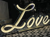 Scritta luminosa con la parola Love realizzata con LED. Il design è elegante, con un carattere corsivo che dona un aspetto raffinato e romantico. La luce emessa è di colore Bianca, creando un effetto accogliente e suggestivo. La scritta è posizionata su una base, per permetterne un facile posizionamento su pavimenti o altre superfici.