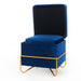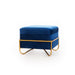 Set di due pouf quadrati in velluto colore blu. Entrambi i pouf presentano una struttura solida rivestita in morbido velluto. La base è realizzata in metallo dorato che aggiunge un tocco di eleganza e modernità.