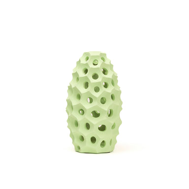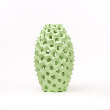 Vaso in resina in colorazione verde, caratterizzato da fori su tutto il perimetro che gli invocano uno stile adatto alla stagione primaverile e est...