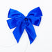 Fiocco doppio Blu in raso con coda corta, 14x4x16 cm, dotato di una pratica fascetta metallica intrecciabile che ne facilita l' utilizzo. Venduto in cartone da 100 pz, adatto per il confezionamento di uova di pasqua , prodotti dolciari e creazioni di pacchi regalo e chiudipacco